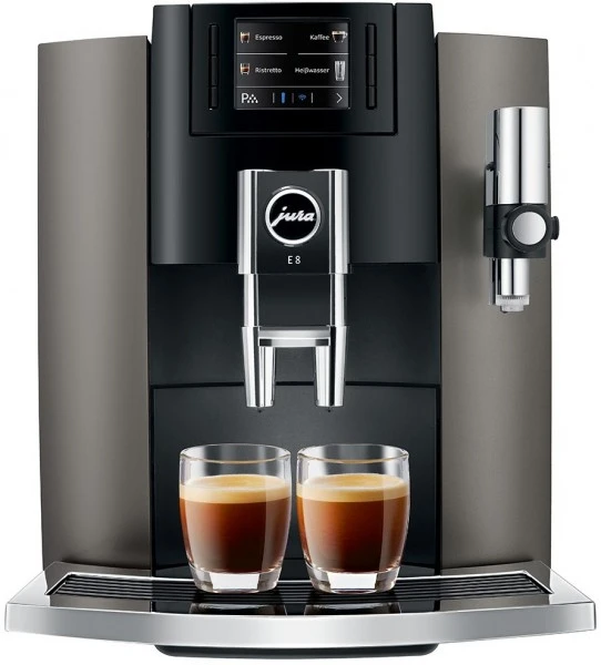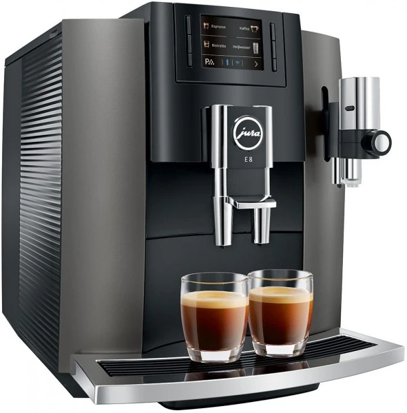 Juras E8 verfügt über ein praktisches TFT-Display und ein hochwertiges Design. Dank integrierter Reinigungs- und Pflegeprogramme bietet der Kaffeevollautomat ein Höchstmaß an Hygiene, da zudem der Milchauslauf einfach abgenommen und gereinigt werden kann. Mit individuellen Einstellungsmöglichkeiten (z.B. Wassermenge, Kaffeestärke) hat mit der Jura E8 jeder Nutzer die Möglichkeit, seinen ganz persönlichen Lieblingskaffee zu kreieren.