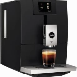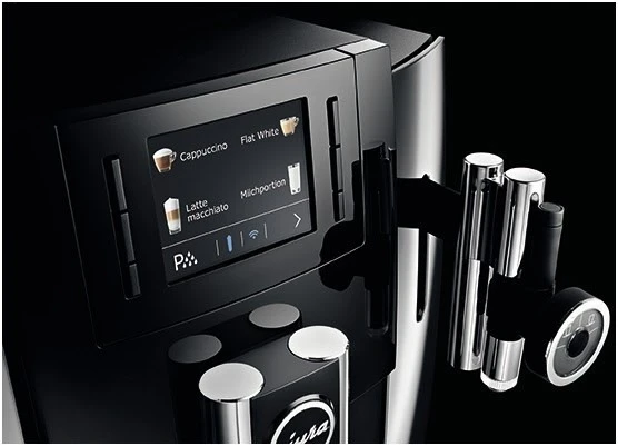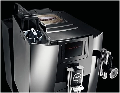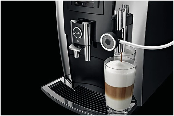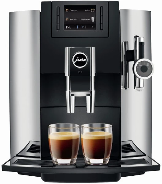 Der Jura E8 Kaffee-Vollautomat in der Farbe Chrom überzeugt mit einfacher Bedienung und guten Reinigungsfunktionen.