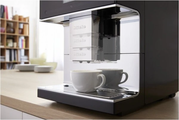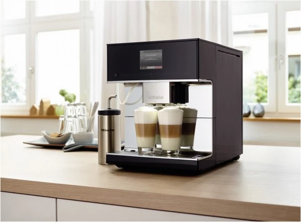 Dieser Kaffeevollautomat ist einfach rundum praktisch. Denn mit dem Miele CM 7500 Einbau-Kaffee-Vollautomaten bekommen Genießer eine facettenreiche Auswahl und viel Komfort bei der Bedienung, worunter auch das selbstständige Entkalken der Maschine fällt. Wer frisch gebrühten Kaffee liebt, bekommt mit dem Miele Vollautomat auch größere Behälter für Bohnen, Wasser und Kaffeesatz. Alle milchführenden Leitungen werden automatisch gespült und die Brüheinheit der Maschine ist besonders effektiv und leistungsstark.
