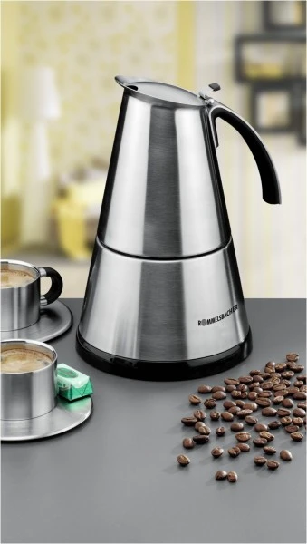Wer genießt ihn nicht gerne – den original italienischen Espresso. Der hochwertige ROMMELSBACHER Espresso Kocher deluxe ist die beste Voraussetzung dafür. Optisch ein Blickfang: perfektes Design, geformt aus hochwertigem Edelstahl und ein ergonomisch geschwungener Edelstahl-Griff mit wärmeisolierendem Kunststoff auf der Innenseite. Ob nun 6 Tassen oder – durch den im Lieferumfang enthaltenen Filtereinsatz – 3 Tassen Espresso, die Bedienung ist einfach und bequem. Wasser und Espressopulver einfüllen, die cordless Kanne auf den Zentralsockel aufsetzen, einschalten und los geht’s. Sobald der Espresso fertig ist, schaltet sich das Gerät automatisch ab. Einfach perfekt!