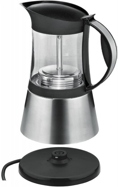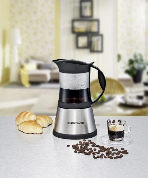 Wer genießt ihn nicht gerne – den original italienischen Espresso. Der hochwertige elektrische Espresso Kocher mit dekorativer Glaskanne ist nicht nur optisch ein Blickfang, sondern besticht auch durch die traditionelle Art der Kaffeezubereitung. Elegantes Design und hochwertige Materialien aus Edelstahl und Glas runden die Ausstattung des Gerätes ab. Das Gerät verfügt über ein integriertes Heizsystem und ist somit unabhängig von einer Kochplatte einsetzbar. Ob 6 Tassen oder – durch den im Lieferumfang enthaltenen Filtereinsatz – 3 Tassen Espresso, die Bedienung ist einfach und bequem. Wasser und Espressopulver einfüllen, Gerät auf den Zentralsockel aufsetzen, einschalten und los geht’s. Sobald der Espresso fertig ist, schaltet sich der Espresso Kocher automatisch ab-einfach perfekt!