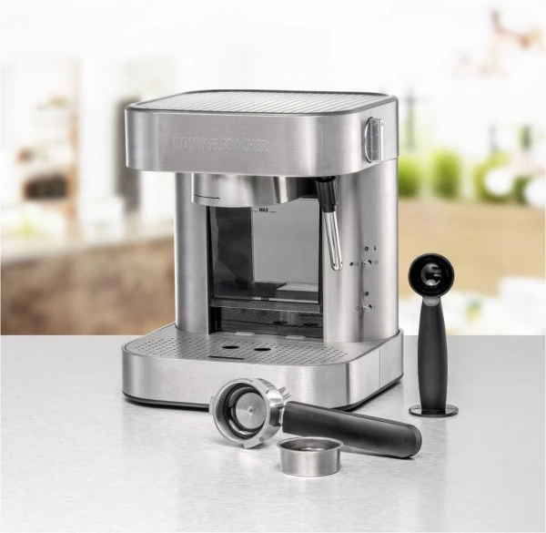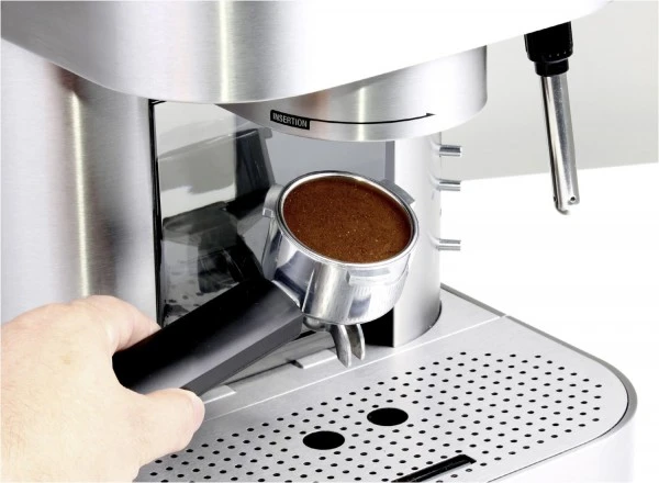 Die Tassenfüllmenge ist manuell einstellbar, für Espresso ganz nach individuellem Geschmack. Der massive 2-Loch Siebträger liegt gut in der Hand, je nach Filtereinsatz können 1 oder 2 Tassen zubereitet werden. Der 1,5 Liter Wassertank und die Abtropfschale sind abnehmbar und dadurch einfach in Handhabung und Reinigung. Ein auswechselbarer Wasserfilter im Tank sorgt zudem für eine gleichbleibend gute Wasserqualität. Das perfekte Gerät für das „kleine Café“ zu Hause!