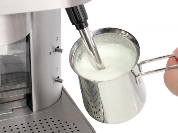 Dazu können frisch gemahlene Bohnen oder – ganz praktisch – auch fertige Espresso/Kaffee Pads verwendet werden. Mit der abnehmbaren Edelstahl Düse lassen sich bequem heißer Milchschaum für Cappuccino oder Latte Macchiato, sowie Heißwasser für Tee etc. zubereiten.