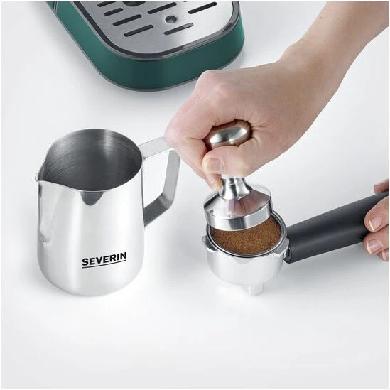 Professionelles Barista-Starterset bestehend aus massivem Tamper und Edelstahl-Milchschaumkännchen (ca. 400 ml).